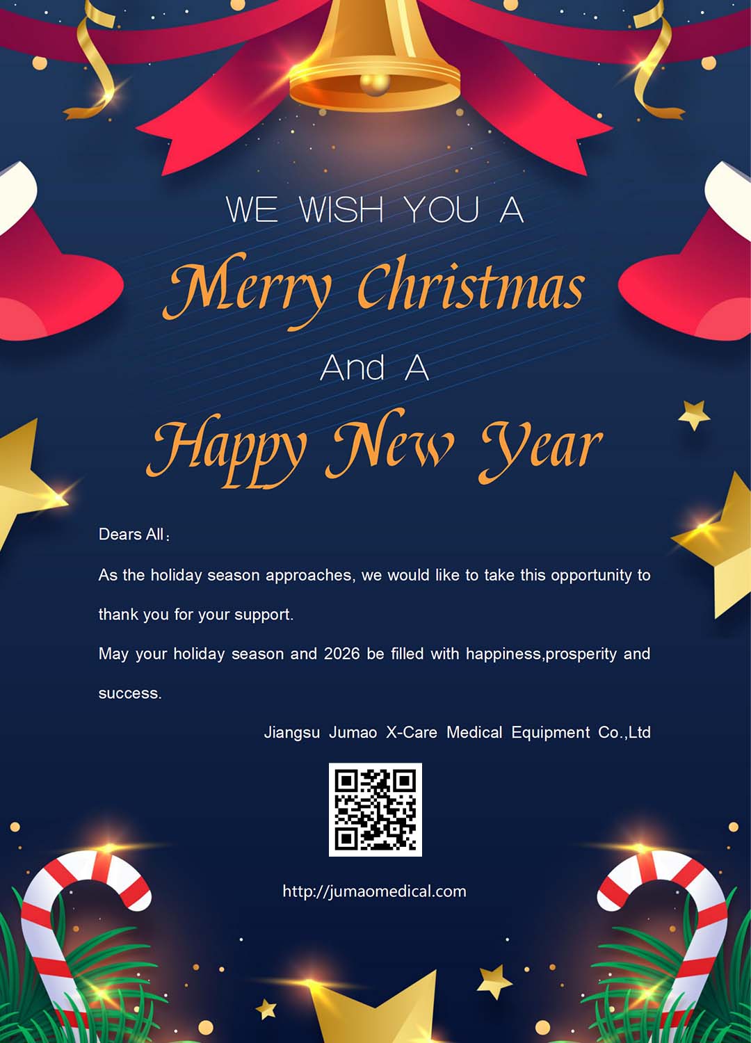 As the festive lights twinkle and the spirit of giving fills the air, all of us at Jiangsu Jumao X-Care Medical Equipment Co.,Ltd. would like to extend our warmest early Christmas wishes to you—our valued customers, partners, healthcare professionals, and friends around the world.