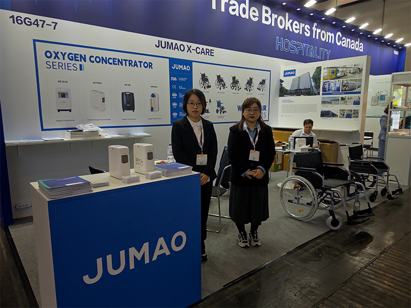 MEDICA 2025 gathered over 5,300 enterprises from 70+ countries, with 1,300 Chinese companies leading in participation and quality upgrades to compete in the global market. JUMAO Medical’s core exhibits included the OXYGEN CONCENTRATOR SERIES (covering portable home-use and medical-grade oxygen generators) and the JUMAO X-CARE rehabilitation assistive device series (wheelchairs, walkers, etc.). Certified by CE, FDA and other international standards, these products feature precise oxygen concentration control and ergonomic design. On-site, the booth received inquiries from dozens of buyers from Canada, Europe and the Middle East, with intended orders targeting home healthcare and senior care institutions.